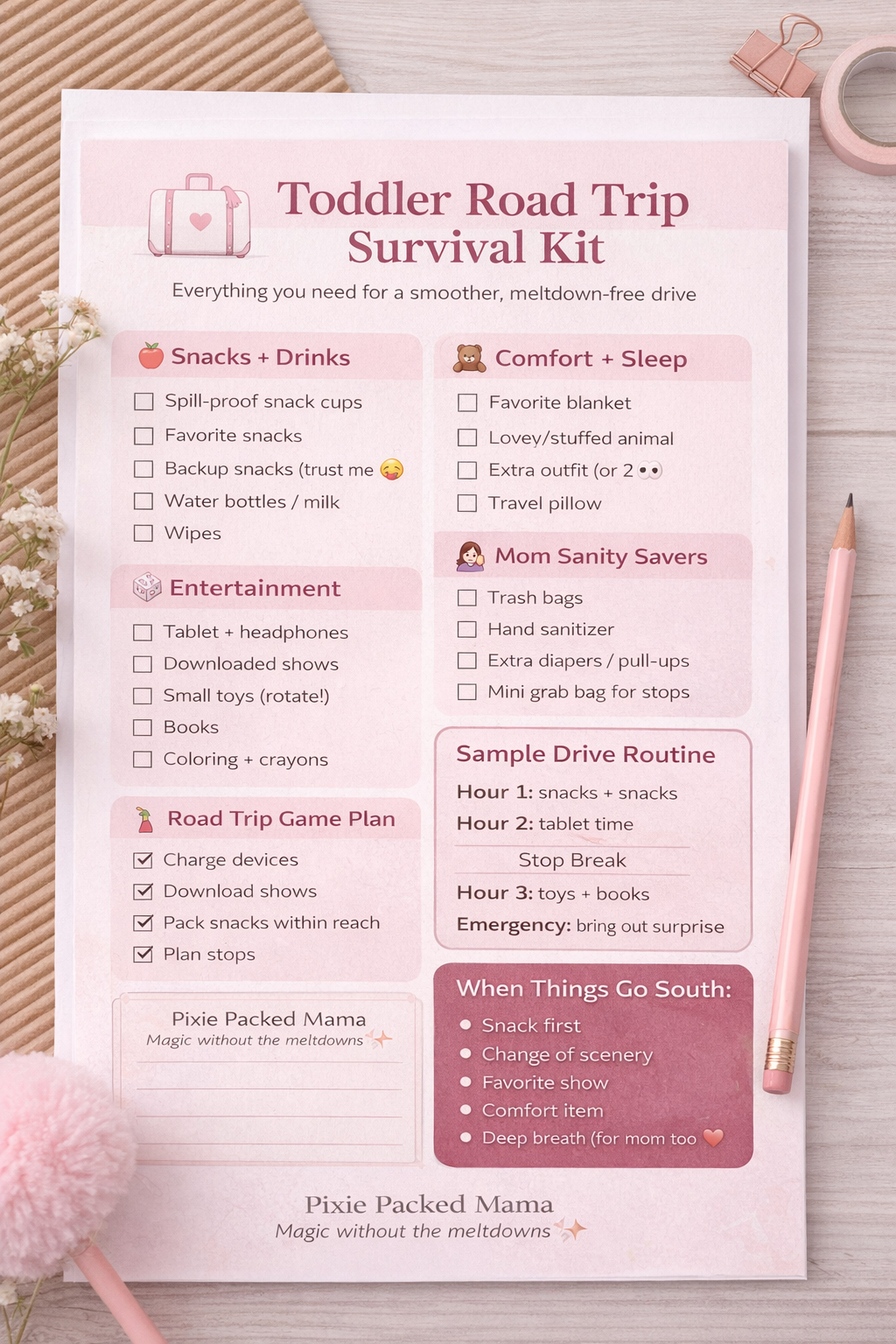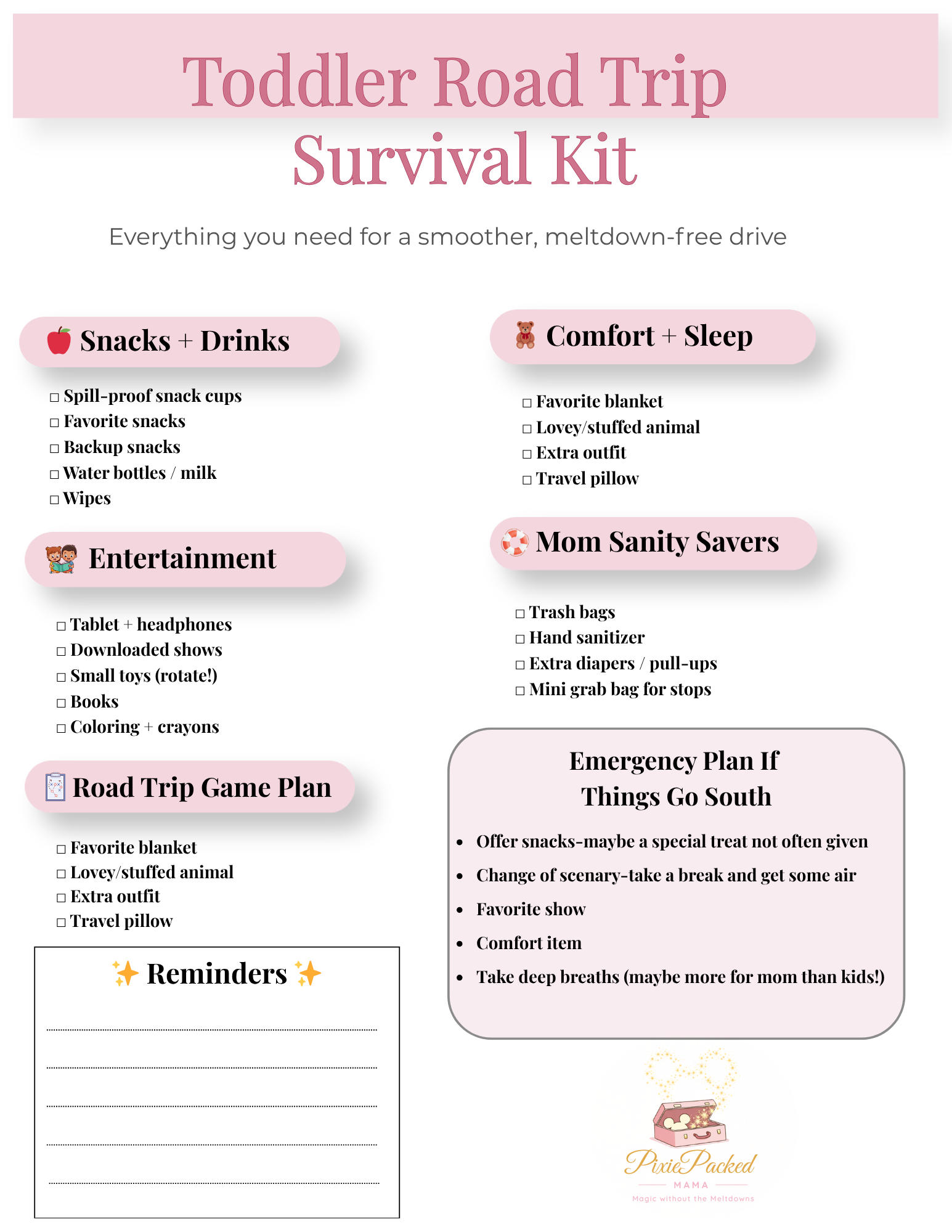 Feeling overwhelmed yet? Don’t worry—I put everything into a simple checklist you can print and keep in the car.